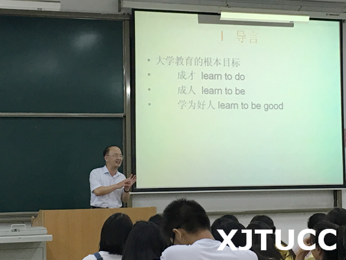 英语专业教育由外语系副主任赵永生副教授主讲。赵老师从大学教育的目标导入,鼓励新生在大学生活中要学会学习、学会思考、学会表达。接下来,赵老师介绍了英语专业的培养方案和课程设置,希望同学们能树立学好英语的信心和决心。同时督促新生要做好人生和学业规划,满怀激情地开始大学生活。赵老师在介绍我校教育教学优势的同时,也让新生头脑风暴,思考自身的优势是什么,将自己的优势和学校的优势相结合,以便自己能事半功倍,扬帆远行。最后赵老师鼓励新生心中要有理想,做事要有方法,祝愿新生可以带着老师的期待乘风启航,成为高素质的复合型外语人才。