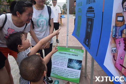 在志愿者服务点负责同学的代领下,大家走进创新花园,与社区老人、青年及小朋友们开展了一场别开生面的互动交流。大家按照原定计划,一部分志愿者手持自制的展板主动为过路停留的行人讲解科普知识,一部分同学邀请社区的小朋友们参与我们的活动中来,通过垃圾分类的小游戏让小朋友们更加清楚地了解垃圾分类的相关知识。