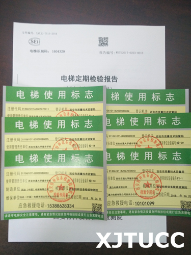 特检院为我院发放的电梯合格证