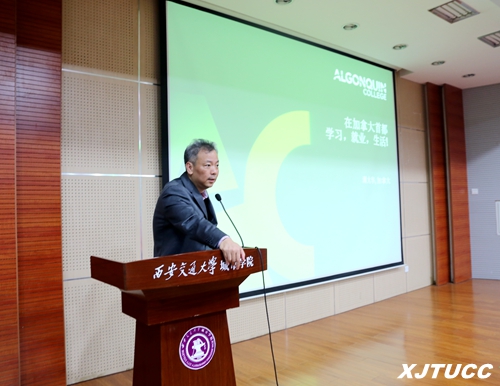 高璐老师最后简要介绍了我校与加拿大亚岗昆学院合作的3+1研究生文凭项目,讲到目前参加项目的4位同学全部留在加拿大,攻读硕士学位或就业,真心欢迎交大城市学院更多学生赴加学习,也希望更多教师可以有机会赴加进修学习,感受加拿大文化。