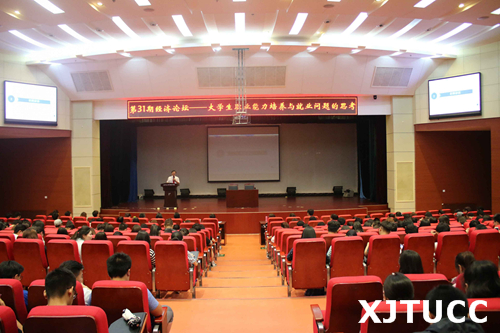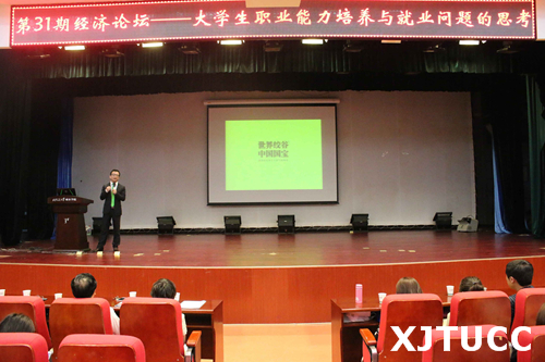为了加强学校与企业的合作,提高大学生实践与理论相结合的能力,培养高素质的应用型人才,yl7703永利官网经济系于5月22日晚在教二报告厅召开第31期经济论坛--大学生职业能力培养与就业问题的思考。出席本次活动的嘉宾有西安法天贵真茶叶有限公司副总裁张吾忌先生,行政人事总监张妮女士,经济系主任杨健全,经济系副主任史冬梅、张武康,经济系学生工作主管廉宇婷,经济系团工委书记叶超,经济系创新创业发展研究室负责人白丹,传播系教师吴越、张亚萱,传播系学生工作负责人陈杜昊以及经济系全体辅导员老师们。本次活动全程由郑云蔚同学主持。