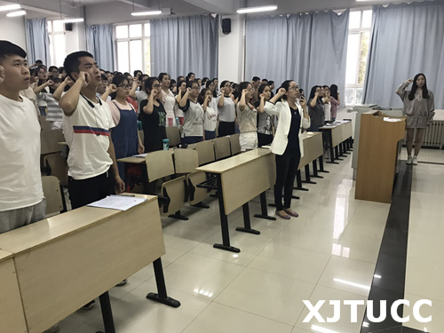 叶老师围绕团中央要求,结合学校团学工作实际,从在生活中,遵纪守法,尊敬师长,团结同学;在学习上,目标明确,扎实认真,诚信考试;在社会实践中,主动参加各项团日活动,积极投身志愿服务;在思想上,积极向党组织靠拢,发挥模范带头作用四个方面,就如何做一名优秀共青团员进行了讲授。在授课过程中,叶老师用一段短视频为大家展示了中国共青团的辉煌历程。最后,叶老师带领全体团员青年重温了入团誓词。