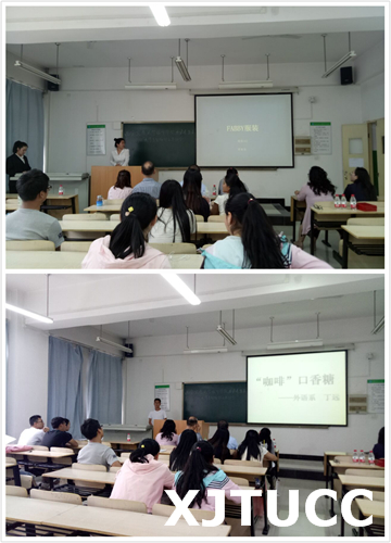 “Fabby服装”、“大学生闲杂物品交易平台APP”、“咖啡口香糖”、“投影黑板”“嗨佩儿教育培训中心”、“Let It Free APP”等项目负责人依次上台用精彩的PPT展示了他们的项目。经过评委打分,英语162班丁远团队的“咖啡口香糖”项目获得本次活动一等奖。商英151班高雪娇团队的“大学生闲杂物品交易平台APP”获得二等奖。