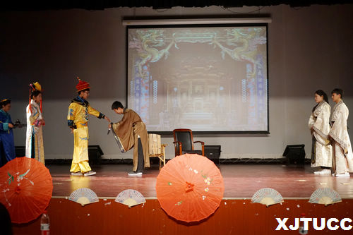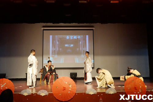 演出在由我院创优三部带来的《风雅诵》中拉开帷幕,师生们以诵读的形式呈现了《大学》选段及《爱莲说》,那一句句脍炙人口的佳作带给我们无尽的教益,并引起台下同学们情不自禁得跟读起来;话剧串烧《新大话西游》让观众们跟随至尊宝的脚步一起穿梭三个时空,寻找他的紫霞仙子,让观众们身临其境般感受“荆轲刺秦”、“康熙千叟宴”、“青年爱国运动”经典片段里的紧张与激情;在节目《落雨拾零》中,学生代表们为大家分享了读书月所读书籍中的经典语句及阅读感悟;接着,舞剧《国色天香》为大家讲述了中国四大美人曲折动人的传奇故事,给观众带了一段非比寻常的视听盛宴;伴乐书法《琴心墨韵 甘露煮茗》琴、茶、书法的完美结合为此次演出增添了几分别样的韵味;最后的《穿越古今》节目中,同学们身着不同朝代的古装走秀,经过讲解员的介绍,让观众们对各个朝代的服饰有了一定的了解。整场精彩纷呈的表演赢得了现场观众的阵阵掌声。