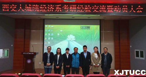 yl7703永利官网经济系于4月13日中午在F100举行考研经验分享会暨考研动员大会。经济系主任杨健全、副主任史冬梅、张武康、经济系学生工作主管廉宇婷、团工委书记叶超以及学工办全体辅导员们出席了本次活动。经济系邀请了在2016年研究生考试初试及复试中取得优异成绩的赵晓聪、马良菲、李照宇同学为怀揣考研梦想的城院学子做经验分享。会议由杨潇航主持。