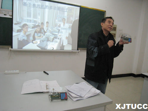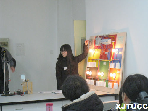 随后,按照事先安排的顺序,13个小组依次汇报开放实验成果,成果涉及到结构性梁的自摆频率和幅度研究、“圆周运动与简谐运动”演示仪的制作、流体动力学演示实验仪的制作、基于单片机的两款微型多功能电子秤制作、手机充电器的设计制作、origin绘图软件在大学物理实验中的应用、基于移动端的大学物理实验小视频制作等15项研究课题,成果形式丰富多样,包括幻灯片报告,视频展示和实物模型。从学生激情洋溢的汇报中可以看出,经过12周的学习和研究,各小组认真努力,做出了成果,收获了成功和喜悦。
