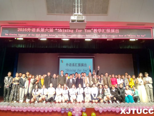 为了展示外语专业学生学习状况,西安交大城市学院外语系于12月21日晚在教二报告厅举办“shining for you ”汇报演出。莅临本次活动的嘉宾和领导有管理系韩珺老师、人文社科系陈杜昊老师、电信系丁玎老师,外语系副主任赵永生副教授、日语专业首席教授李国栋副教授、杜彦龙副译审,日语专业教研室主任吴夫迎老师,外籍教师Gurli Woods和Howard Woods 夫妇、Michael Elwes Graney及外语系学工办老师。