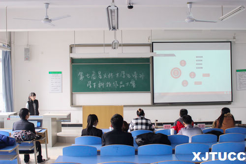 比赛分为两个环节:选手自主答辩和评委老师提问环节。各答辩团队通过PPT展示,从科技创新、创业前景、社会经济实践、互联网的应用、现代娱乐文化等方面,多角度向评委老师介绍并阐述自己作品的定位、想法以及可实践性。科技制作类不乏有好的创意,其中《便携式太阳能移动监控设备》采用5.8G的发射与接收器,一方面减少能源消耗,一方面便携的跟踪设备,极具实用性。在创新创业类中,墨言堂作为一款独具匠心的手机APP,吸引了众多书法爱好者,改善人们的生活品质,提高了人们的生活情趣;悦心VR风景直播,希望利用先进的VR技术进行风景直播,让人们既可以领略到珠穆朗玛峰的高处不胜寒,也可以感受到西班牙的热情似火,没有高额的旅游预算,也可以享受各地美景;鸮谷团队选择新媒体方面的运营,开展了大量的视频制作、平面设计等工作。在调查报告类,不同同学有各自不同的出发点,其中参赛作品《网络直播对大学生的影响》抓住热点问题,切实把调查深入到大学生的生活中,引发了一定的思考。学术论文类,论文中对环境保护与人文法制所存在的缺陷与不完善都作出了相应的解决对策,其中《资源型城市可持续发展路径的探讨》把重点放在了现代城市的发展之路,紧跟了时代潮流,握紧了时代发展的脉搏。在答辩中每支队伍都展示出了自己作品的独一无二性,现场的气氛也十分活跃。