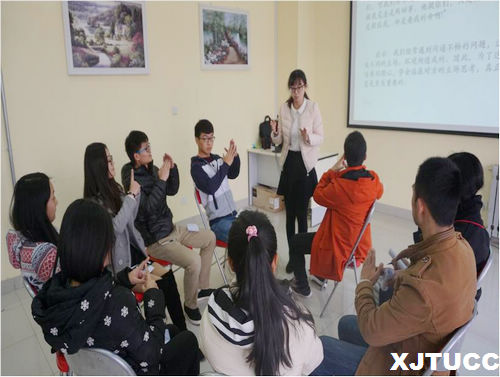 在第四次团辅活动中,段老师以“沟通圈”“优点轰炸”等游戏,使成员深入互动,以团队的力量促进个体成员的成长。随后通过“夏令营”游戏,引导大家了解魅力交往第四步——人格魅力。活动最后,成员纷纷发表自己的感受,不少人觉得对人际交往有了全新的认识,在活动中突破了自己,感受到团队成员的温暖,甚至有位男生提到从来不与人交流的自己,第一次跟人说了这么多话,大家也对他的成长报以热烈的掌声。