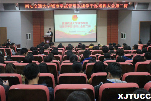 伴着庄重的共青团团歌,大会拉开了帷幕。之后,冀祥老师围绕“在团学活动服务中全面提升综合素质”为主题给管理系团学干部们详细的讲述了团组织的组织架构,提出了对基层团组织干部、学生会干部的要求,并以韩国总统朴槿惠、阿里巴巴创始人马云、苹果手机创始人乔布斯等著名的人物形象为例的向我们描述了团学干部所需的优秀品质。随后,冀祥老师以提问互动的方式来了解大家对团学干部应具备哪些品质以及如何带领团队等问题的认知并与大家一起分享了自己的体会。他提到,当代大学生应该积极参与到活动中去,才能更好的理解管理者的不易,才能更好的带领团队。最后,冀祥老师强调到,团干部应端正自己的态度,树立终身学习的观念,提高自身的道德素质,增强团员间的凝聚力,充分发掘自身潜力,发挥青年人的创新能力和开拓精神。希望学生干部们能够在今后的学习工作中克服阻力继续前进,并学习持之以恒的精神。