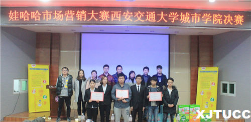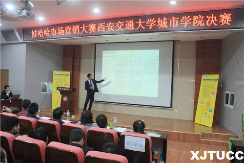 为展现丰富多彩的校园文化,全面加强当代大学生的素质,锻炼同学们的营销能力,由杭州娃哈哈陕西分公司赞助的娃哈哈市场营销大赛于11月17日正式开始。本次活动在学院领导以及系团学组织的领导下进行的如火如荼,取得了不错的效果。12月14日中午,由yl7703永利官网管理系主办的“娃哈哈市场营销大赛yl7703永利官网总决赛”于F100举行。出席此次活动的领导嘉宾有娃哈哈陕西分公司总经理宋凯,娃哈哈市场部党浩倬,管理系副主任郭关科,学生工作主管刘健,学工办李辉、姚赞老师,以及管理系惠春丽老师。
