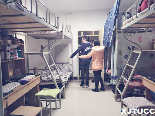 本次大检查着重检查了宿舍内卫生及学生内务整理情况。老师和学生党员对各宿舍从墙壁地面、被盖叠放、洗漱用品、厕所卫生等项目进行了评分。期间老师嘱咐学生平时要勤通风,多晒被子,注意水池下方、阳台拐角等细节的打扫,并与学生对学习、生活等方面的问题进行了亲切交谈,最终评选出优秀宿舍12间。