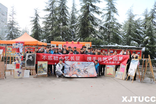 活动中,艺术系各团支部充分发挥专业特长,紧紧围绕“传承长征魂,共筑中国梦”的主题, 展示出各类书法和绘画等作品,大力弘扬长征精神,让更多的学生参与进来,为实现美好中国梦贡献自己的力量。同时,学生们拉起以“不忘初心忆长征,携手共筑中国梦”为大主题的宣传横幅,邀请过往的师生签名,传递红色精神与爱国之情。整个活动过程大家都积极参与,气氛和谐融洽,尽管外展时间短暂,但是大家都有了很大的收获,也使学生会更加团结默契。