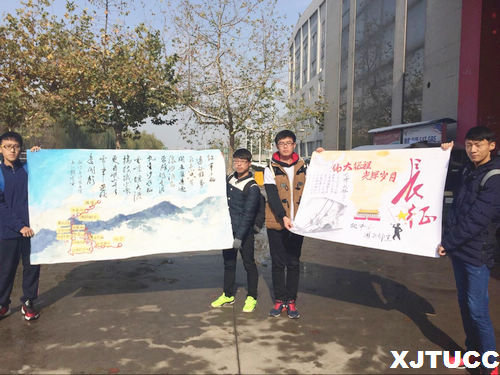 为纪念长征胜利八十周年,感恩中国共产党的领导,感谢祖国母亲的培养之恩,西安交大城市学院计算机系于11月23日中午在中快楼下举行了“弘扬长征精神,凝聚中国力量”的主题团日活动外展。计算机系团工委负责人刘一凯老师、系团学会干部、全体干事以及各个团支部同学参加了本次活动。