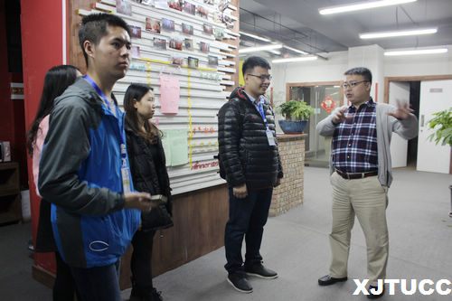首先,李学长带领大家参观公司,整齐干净的办公区,简单又不失风格的办公室,许多人性化的小地方无不体现着这个大家庭的温暖。随后,学长简单的介绍了公司的相关情况,使我们对该公司的企业文化、企业发展现状和目标有了初步的了解,同时也加深了我们对相关理论知识的理解。