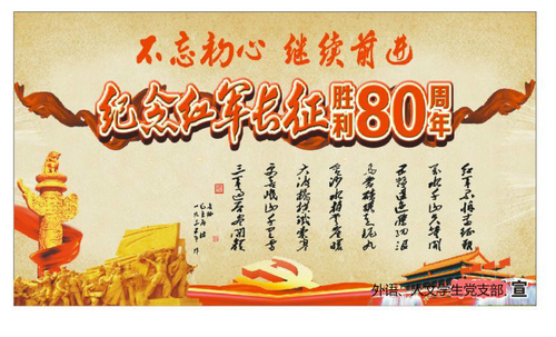 2016年是中国工农红军长征胜利80周年,为了使支部学生党员、入党积极分子理解和继承长征精神,增强学生的历史责任感和使命感,外语、人文学生党支部举行了纪念长征胜利80周年系列活动。本次主题教育活动共分为五个部分。