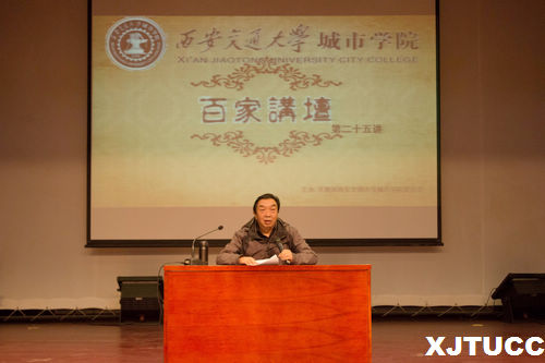 讲座伊始,主持人就主讲人和讲座内容做以简单介绍,她指出百家讲坛是一档以追求学术创新,鼓励思想个性,强调雅俗共赏,重视传播互动的品牌活动,同时是城院学子拓展知识和品味学术的另一扇大门。