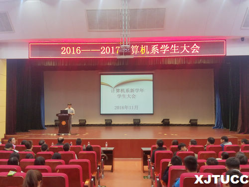 为更好的促进计算机系教学和学生管理工作,西安交大城市学院计算机系于11月10日晚在教二报告厅举行2016-2017年学年计算机系学生大会,计算机系全体学生参加此次会议。计算机系主任缪相林老师、副主任许大炜老师、胡朋老师、毕鹏老师以及学工办老师出席,学生工作主管刘敏涛老师主持会议。
