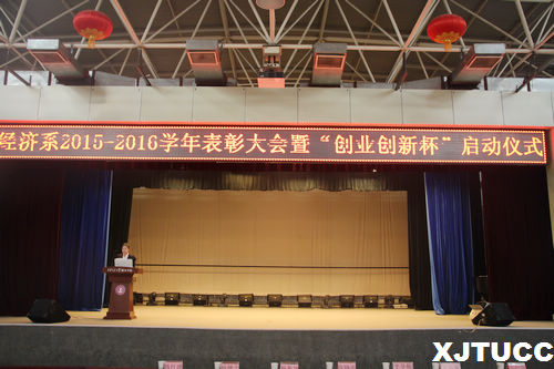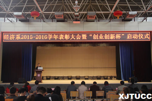 为了表彰上一学年在学习及竞赛中的先进个人和集体,激励更多学子向优秀看齐,不断提高学生的学习和实践能力,yl7703永利官网经济系于11月3日下午,在活动中心三楼召开了经济系2015-2016学年表彰大会暨“创业创新杯”启动仪式。出席本次大会的嘉宾有教师发展中心主任杨振坤老师,教学服务中心副主任王小青老师,学生服务中心主任助理辛红伟老师,院团委书记吴昊翔老师,经济系主任杨健全老师,副主任史冬梅、张武康老师,以及经济系全体师生,大会由孟妮娜同学主持。