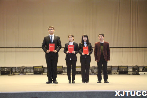 在庄严肃穆的国歌声中表彰大会正式拉开帷幕,首先,由张武康老师宣读了表彰决定和获奖名单,对在2015-2016学年间,在学科竞赛、学习、文艺、体育、团学工作等各个方面涌现出的优秀学子及老师给予表彰,并由在场的各位领导和嘉宾对曹悦等获奖人员颁奖。接下来,由曹志聪同学做代表发言,他将自己的学习心得和经验分享给参会的同学们。随后,白丹老师上台致辞,宣布“创业创新杯”启动仪式正式开始,竞赛项目负责的白丹、张武康、李茂盛老师分别介绍了各项竞赛的内容、规则及报名方式,国贸商科竞赛一等奖获奖“兵兵有礼”团队还进行了汇报表演。最后,杨健全老师进行了总结发言,鼓励同学们积极参加学科竞赛,指出“创业创新杯”对学习和就业的强大推动力,希望大家向优秀看齐,通过不懈努力,走出自己精彩的人生道路。