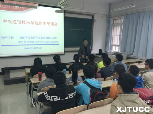 冯恩信教授就电子信息工程专业的特点、教学培养目标、学院师资队伍现状以及学生就业前景与方向等问题,为新生进行了全面的讲解;并就如何学好专业知识对同学们进行了细致的指导。刘栋先生讲述了中兴通讯股份有限公司的基本情况及发展历程,并将城市学院中兴项目的具体情况为大家做了解读。本次师生见面会充分拉近了中兴通讯技术学院师生间的关系,让学生们深切感受到校企合作的优势。