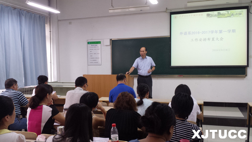 为进一步提高教育教学质量和管理工作水平,西安交大城市学院外语系于9月18日下午在教学楼B319教室召开2016~2017学年第一学期工作安排布置大会,传达了学院干部大会内容并安排布置了外语系本学期重点工作。