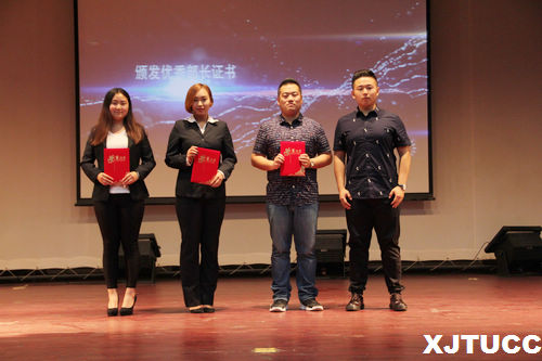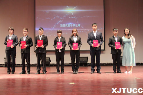 随后,由团学会组织部原部长申渤山代表上一届团学干部发言。在对上届团学工作进行总结的同时,申渤山同学也分享了自己的干部经验。随后,主持人宣读上届优秀部长及干事获奖名单,并由杨耀聪、陈露老师分别为获奖同学颁发荣誉证书。接着,主持人宣读了新任团学干部的聘任名单,由霍伟森老师为新任主席团、部长、副部长颁发聘书。颁奖结束后,由新一任团学会主席王旗进行主席团代表发言。王旗同学承诺一定会带领新生力量以最大的热情投入系团学工作,积极营造团学会的“家”文化,努力服务于全系师生。