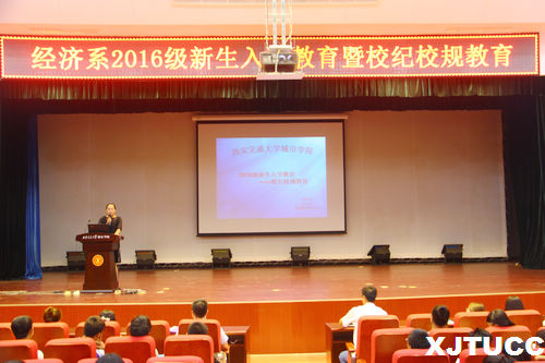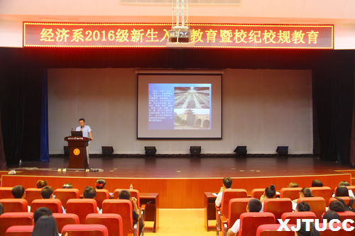 为帮助大一新生们尽快适应大学生活,了解学校各项管理规章制度,引导学生学纪律、懂纪律、守纪律,经济系于9月7日晚在教二报告厅开展2016级新生校纪校规主题教育。本次报告会由雷少飞老师主讲,刘洋老师主持,王经洲老师和公寓辅导员姚赞、张颖老师以及2016级全体新生参加了本次报告会。