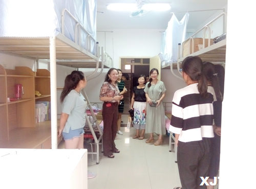随后,李小妹教授带领系主任助理王梅芳、16级班主任李香香、王相茹、学生主管汪寸琬、团工委书记汪成鸿等老师逐一走访了我系2016级学生宿舍,并看望了解了新生的生活情况。