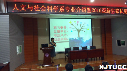8月21日下午,yl7703永利官网人文与社会科学系在F100召开了专业介绍暨2016级新生家长见面会。人文与社会科学系主任张蓉、2016级班主任老师常媛、梁晓菲、辅导员陈杜昊、迎新负责人曹嘉伟、专业课教师徐阳、吴越、办公室老师赵燕出席了本次见面会。