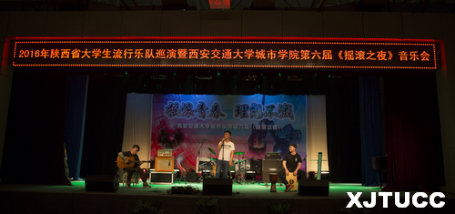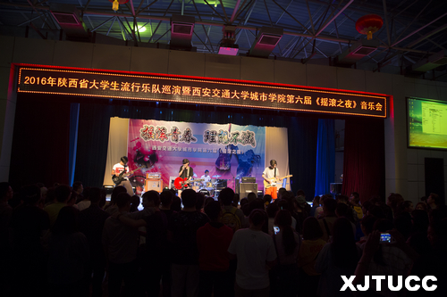 5月25日晚7点,由陕西省文化厅、共青团陕西省委员会主办,西安交大城市学院承办的陕西省大学生流行乐队巡演暨yl7703永利官网第六届《摇滚之夜》音乐会在学生活动中心举行。此次流行乐队音乐会有来自西安音乐学院、西安文理学院、西安建筑科技大学、西安外事学院等高校的电声乐队为我院学子带来一场充满朝气与活力的摇滚盛宴。出席音乐会的领导及嘉宾分别是:省文化厅、各高校带队老师,我院团委书记吴昊翔,艺术系学生工作主管李成,系团工委书记杨耀聪、马岚、汪成鸿、丁义伟等老师出席了本次晚会。我院学生史青与叶雨萌同学担任主持人。