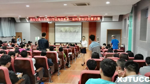 “丰富电信文化、营造科学氛围”,5月25日晚西安交大城市学院电信系在F100报告厅举办第二届科普知识竞赛。到场的老师有系团工委书记张天、学工办丁玎老师。竞赛由牛睿和刘钊同学主持。