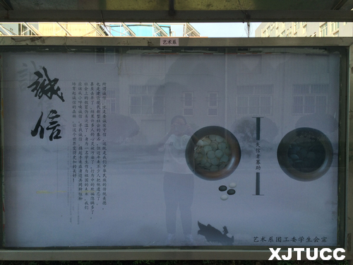 5月23日,系团工委在系宣传栏张贴以诚信为主题的宣传海报,起到资助诚信教育的宣传作用。