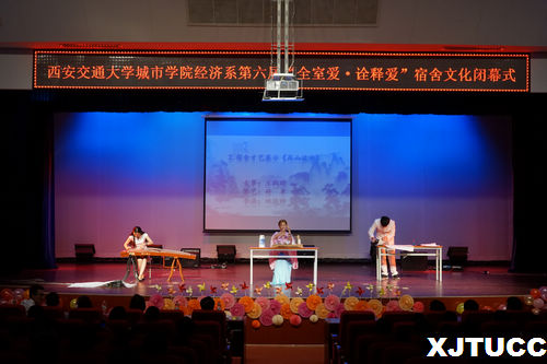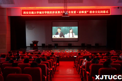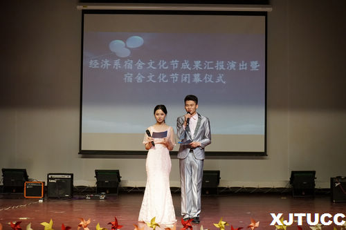 闭幕式开场以一段暖心的校园实拍视频为大家展示了舍友之间的真挚情感,接着由经济系学生会生活部代表带领我们一起回顾本次宿舍文化节的户外趣味活动、宿舍魅力展示、宿舍映像、“奇思妙想”旧物改造、宿舍卫生评比一系列活动经历。之后的汇报表演形式多样,包括了以舍友友情为主线的诗歌朗诵、古筝与茶艺、书法完美结合的才艺展示、现场料理制作、宿舍创意及变废为宝成果展示、最美舍服T台秀、歌曲串烧、优秀宿舍风采展示、话剧《匆匆那年》等。其间,经济系国贸商科竞赛选手还进行了精彩的串场表演。闭幕式以乐队现场伴奏,五个女生演唱电视剧《欢乐颂》主题曲《总有幸福在等你》为压轴节目,为本次宿舍文化节闭幕晚会画上圆满句号。
