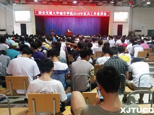 为了做好西安交大城市学院2016年征兵工作,帮助学生更好地了解征兵政策,激发广大学生参军入伍的积极性,我院于5月19日晚在大学生活动中心举办2016年征兵宣讲会,宣讲会由西安市未央区人民武装部政工科甘萍干事主讲,我院各系20余名辅导员、1000余名学生参加了此次活动,宣讲会由学生服务中心吴昊翔老师主持。
