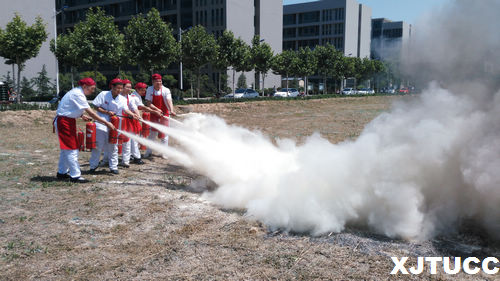 培训活动中,周涛教官针对食堂、物业、校医院、经营商铺等部门的具体实际情况讲解了相关的消防常识和应急办法。例如电器着火、油锅着火如何正确扑救并详细讲解了灭火器和消防水带的使用方法和动作要领。同时,结合理论学习还组织了一场灭火实战演练。