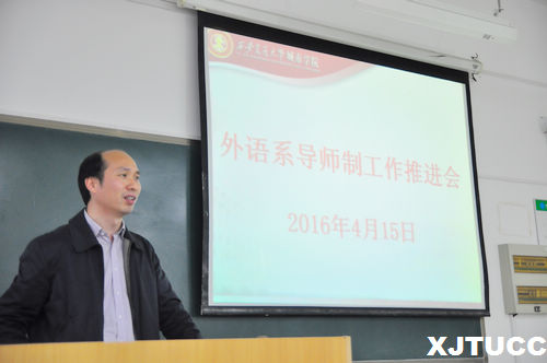 为进一步推进外语系导师制工作的开展,规范导师工作,进一步明确和细化导师职责,外语系于4月15日下午在教学楼B312教室召开了导师制工作推进会。会议由外语系常务副主任韩红建副教授主持,外语系全体教师参加了会议。