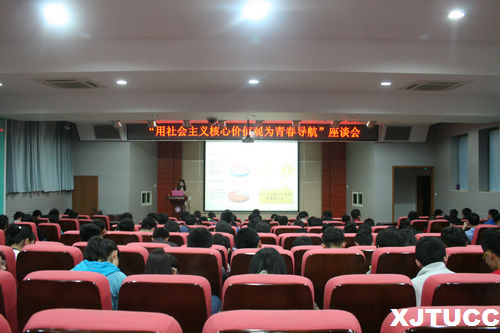 座谈伊始,段老师首先阐释了社会主义核心价值观的定义,她指出社会主义核心价值观是在社会主义革命、建设和改革开放历程中逐步形成和发展起来的,并指导社会主义健康发展的价值目标和价值观念,它为青少年的健康成长提供了坚强有力的指导。随后,段老师从“价值观与社会主义核心价值观”、“大学生在社会主义核心价值观建构中存在的问题”以及“用社会主义核心价值观为青春导航”三个方面对同学们进行详细的讲解。