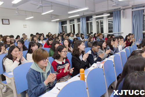 韩隽教授以“新媒体背景下国内舆论格局和新闻传播专业的培养路径”为题,通过对当代新闻媒体工作的四个关键词 “宣传、新闻、公关、传播”的性质与含义进行深入剖析,使同学们清楚了解了国内舆论的新格局的发展过程、媒体议程设置和“舆论场”。韩教授引用大量个性鲜明的案例,通过深入浅出的讲述,让同学们受益匪浅。会场不断传出阵阵的掌声。最后韩教授鼓励同学们要努力学好专业知识,并且形成有良好职业素养、思想端正、具备全媒体新闻传播学术思想和研究能力的新一代传媒人才。