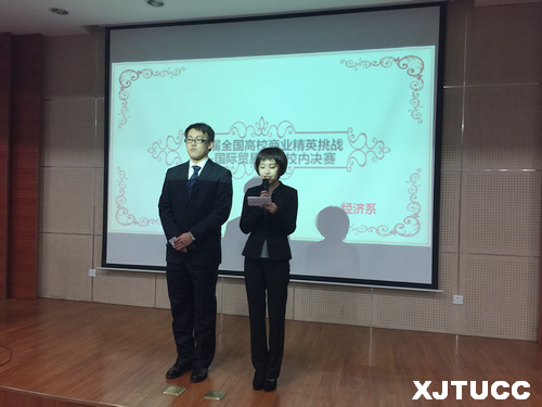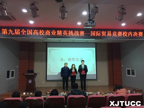 为培养学生实践能力与创新能力,突出经济系“校企合作,寓教于赛,实践育人”的教学方针特色,yl7703永利官网经济系于12月21日晚在F100举办了2016年全国第九届全国高校商业精英挑战赛国际贸易竞赛校内决赛。出席本次比赛的嘉宾及评委有经济系主任杨健全、副主任郭关科、主任助理张武康、教师代表白丹、李霁晨、祁蔚茹、冯茜以及系团工委书记廉宇婷。王叶博文和李恬蓉同学担任本次比赛的主持人。