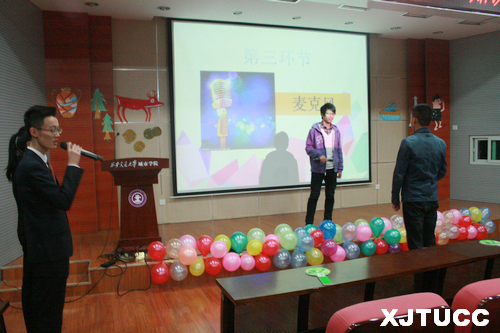 主持人介绍本次比赛环节及规则。第一环节是“=与≠”,每个选手都展示了自己独特的实力。第二个环节是“我们穿越吧”,选手们胸有成竹的表现带动了场下观众们的积极性,本环节之后选出了排名靠前的六位选手。环节三是“心有灵犀”,这六名选手自由组合来完成动作猜题,每组选手的精彩表现也使得赛场气氛热情高涨。最后一个环节是“题王争霸”,各选手镇定自若,信心百倍,场下观众也十分活跃。经过四轮角逐,最后褚昂同学胜出,获得本次百科知识竞赛的冠军。