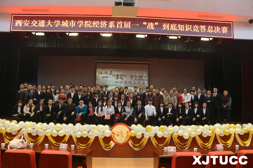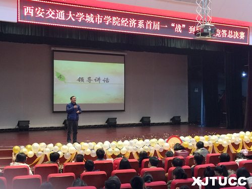 为了丰富在校大学生的校园文化生活,拓展专业知识,提高学生勤思考,爱深究,促发展的能力,西安交大城市学院经济系于12月7日晚在教二报告厅举行“一战到底”知识竞答挑战赛。莅临本次活动的嘉宾有:经济系主任杨健全、副主任史冬梅、副主任郭关科、主任助理张武康、经济系学生工作主管刘静、管理系团工委书记朱艳丽、电信系团工委书记张天、艺术系团工委书记李成、外语人文社科系团工委书记樊超、计算机系团工委书记刘敏涛,团委茹静、管理系学工办陈杜昊、刘虎,计算机系学工办于丛聪以及经济系全体学工办老师。本次活动由赵博文和史雅蕊同学主持。