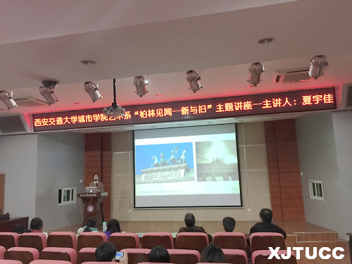 11月30日晚七时,西安交大城市学院艺术系在F100开展教学法“专题讲座”活动第四场,本次讲座的主题是“柏林见闻--新与旧”。讲座由艺术系环艺教研室教师夏宇佳主讲。艺术系全体教职工及各专业全体学生参加了讲座。