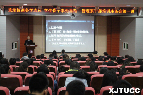 为了更好地践行“尚德笃学,守正创新”的校训精神,同时能够很好地教育学生干部做到以身作则,加强我系学生干部队伍建设,明确学生干部开展工作的方向和目的,提高学生干部的整体素质,西安交大城市学院管理系于11月17日中午在F100报告厅举行了以“秉承校训 名学志远 学生骨干率先垂范”为主题的管理系团学干部培训第一讲。yl7703永利官网工会主席、管理系首席教授王海民、管理系学生工作主管刘健、管理系学工办陈杜昊以及管理系全体团学干部参与了此次会议。