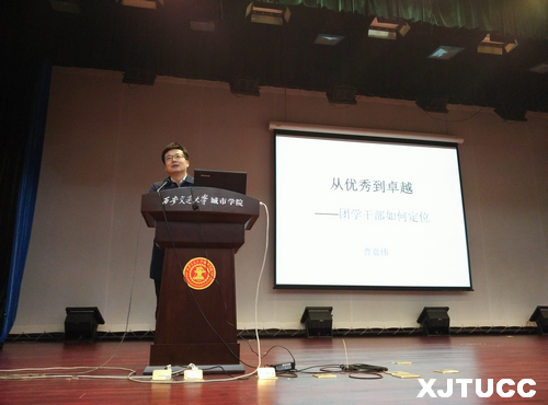 讲座伊始,曹嘉伟老师提出了优秀大学生团员的8条标准,并告诉在场的同学们要对自己有清晰的定位,明白“自知”的重要性。曹老师还指出青年团员是党领导的先进青年的群众组织,是党的助手和后备军。大学生团员更要树立对党的科学理论的信仰、坚定走中国特色社会主义道路实现“中国梦”的信念、提升对党和政府的信任、增进对习近平同志为总书记的党中央的信赖。曹老师还结合自己挂职和学生工作经验,讲述了优秀团学干部应具备的四点品质:勤劳、修为、实践、责任。