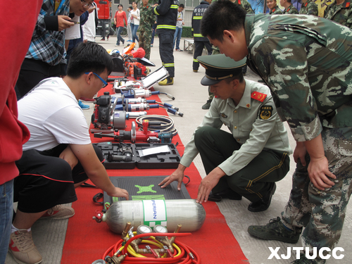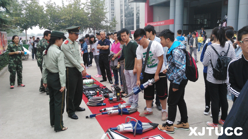9月29日中午,西安交大城市学院保卫部联合西安经开消防大队官兵组织开展消防器材展示及实战演练活动。计算机系主任缪相林,电信系副主任冯恩信,经济系办公室主任刘加宁,机械工程系办公室主任李华,条件保障部主任助理翟春侠,学生服务中心主管吴昊翔,保卫部部长陈涛等老师和广大学生现场进行了观摩。