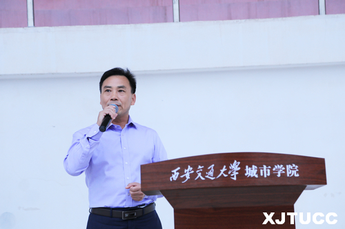 学生服务中心主任张学堂鼓励同学们奋发向上,争做一名合格的大学生。在未来四年中丰富自己的大学生活,与城院同成长、共进步。曹嘉伟老师希望同学们争做一名合格的大学生。