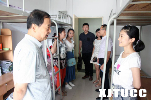 8月16日上午9点半由机械工程系主任杜彦亭、学工办主管霍伟森带领的新生慰问团走访了新生宿舍,与学生家长交流并叮嘱新生在学校要自觉自律自立,尽快适应新环境,在学习方面多下功夫。