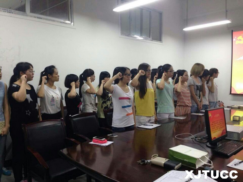 会议开始,蔡婷老师带领支部成员回顾中国共产党的光辉历程、讴歌党的丰功伟绩、表达了对党的诚挚祝福。全体党员一起庆祝中国共产党建党94周年。随后,管理系1301党支部组织委员张曦元老师带领支部全体党员面对党旗,庄严宣誓。最后,蔡婷老师带领所有与会成员开展了“三严三实”的专题教育活动,号召全体党员同志“严以修身,严以用权,严以律己”,努力做到“谋事要实,创业要实,做人要实”。蔡老师提出,全体党员同志都应该从一点一滴做起,践行“三严三实”的基本要求;同时,她也鼓励支部成员在暑假期间多做实践活动,多面向广大群众,展现大学生党员的风采。