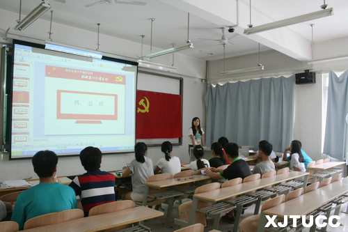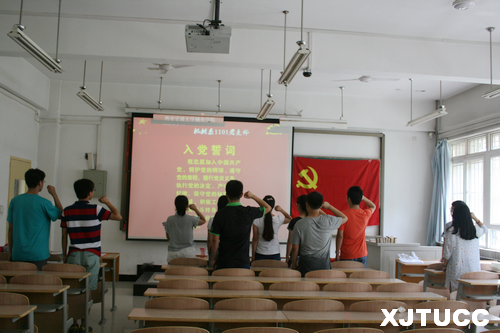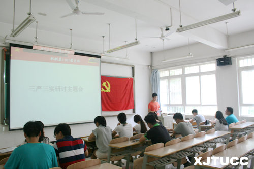 首先,在7月2日中午教学楼D109室,机械工程系1101党支部举行了“新党员宣誓老党员重温入党誓词”的活动。在庄严肃穆的国际歌后,全体学生党员面对鲜红的党旗,进行了庄严宣誓,激昂慷慨的声音表达了自己入党的坚定与决心。之后,全体党员通过观看《筑梦中国》纪录片--《筑梦中国第一集:风雨如磐》,加强了学生对中国历史的认识和对党发展的了解,深刻体会了新中国成立的艰辛与不易,树立了为中华民族伟大复兴的伟大抱负。接着,党员们结合自身及党支部实际对“三严三实”精神进行了具体又务实的讨论。与会党员依次发言,分别讲述“严”与“实”的重要,以先进党员为榜样,以党章为对照,树立了不断发挥党员先进性与模范带头作用的决心。大家相互学习,交流经验,整个现场气氛活跃。